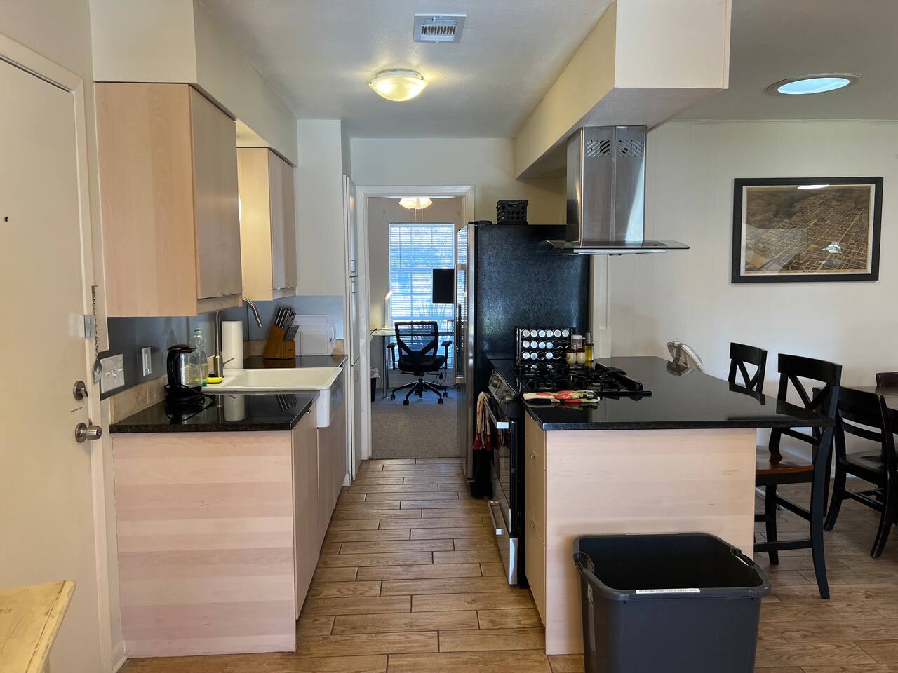 There is a garage that connects this unit with a one-bedroom apartment, which is off-limits to guests and occupied part-time by another Airbnb tenant. Your privacy and quiet enjoyment are a top priority.