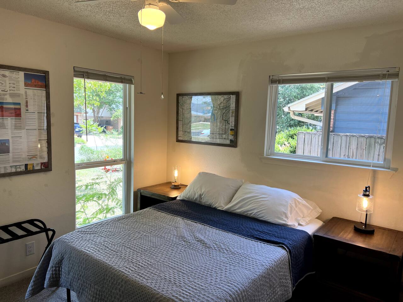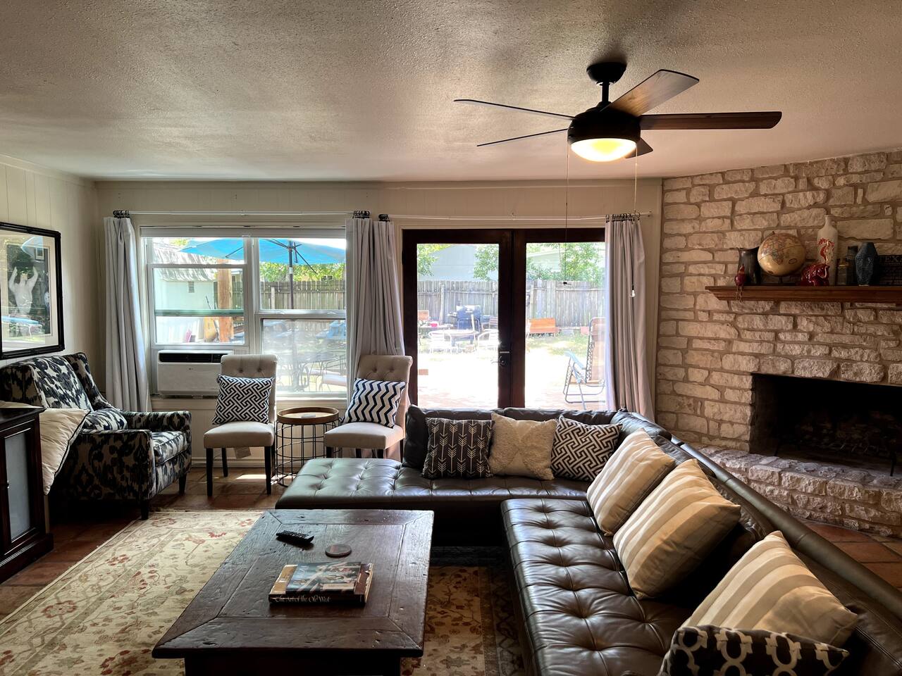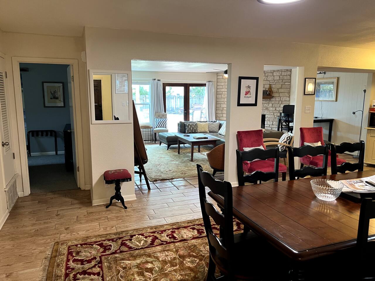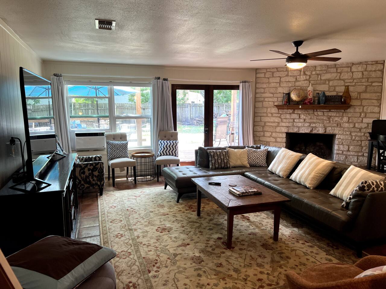 Discover the True Spirit of South Austin! This spacious 3-bedroom, 2-bath retreat embraces the eclectic, laid-back charm Austin is known for. Perfect for families, small groups, and anyone eager to experience authentic Austin, the home features a plush King bed in the master suite, two Full/Double beds in guest rooms, and a Queen futon, comfortably sleeping six. Our home is family and child-friendly, offering a peaceful, no-party environment. Relax in the cozy living area with Netflix after a day of exploring, or refresh with the washer and dryer on-site. The backyard oasis boasts a ranch-style firepit for evening gatherings under the Texas stars. Located in vibrant South Austin, you’re minutes from iconic music venues, trendy shops, and Austin’s renowned food scene. A short Uber or Lyft ride takes you to downtown hotspots. With easy parking for two cars and additional street parking, this retreat combines Austin’s unique vibe with modern comforts, ensuring an unforgettable stay for your group. Please note, there is a separate nanny apartment behind the garage which shares the backyard and split deck.