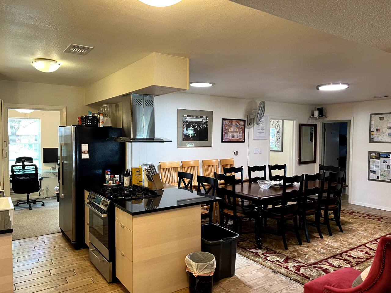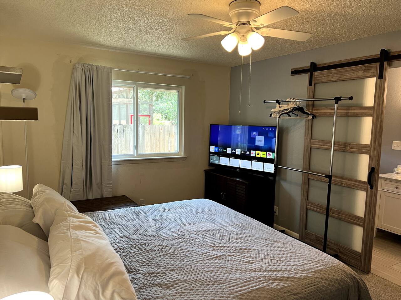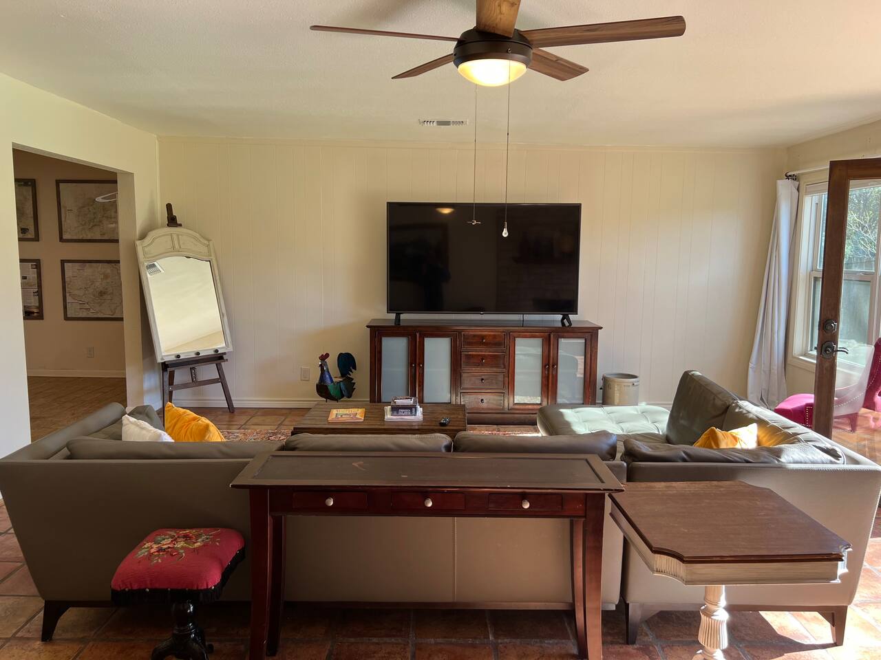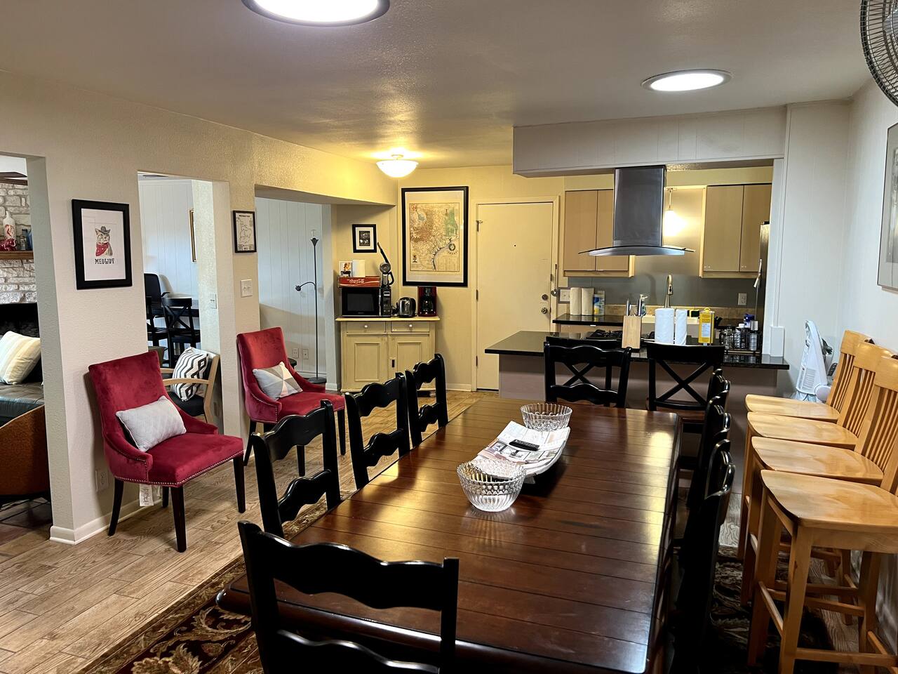 Discover the True Spirit of South Austin! This spacious 3-bedroom, 2-bath retreat embraces the eclectic, laid-back charm Austin is known for. Perfect for families, small groups, and anyone eager to experience authentic Austin, the home features a plush King bed in the master suite, two Full/Double beds in guest rooms, and a Queen futon, comfortably sleeping six. Our home is family and child-friendly, offering a peaceful, no-party environment. Relax in the cozy living area with Netflix after a day of exploring, or refresh with the washer and dryer on-site. The backyard oasis boasts a ranch-style firepit for evening gatherings under the Texas stars. Located in vibrant South Austin, you’re minutes from iconic music venues, trendy shops, and Austin’s renowned food scene. A short Uber or Lyft ride takes you to downtown hotspots. With easy parking for two cars and additional street parking, this retreat combines Austin’s unique vibe with modern comforts, ensuring an unforgettable stay for your group. Please note, there is a separate nanny apartment behind the garage which shares the backyard and split deck.